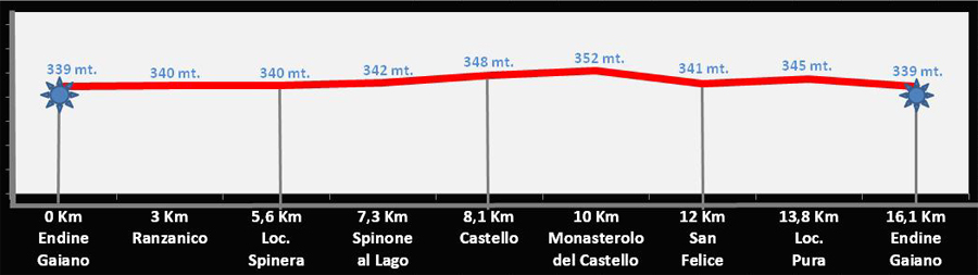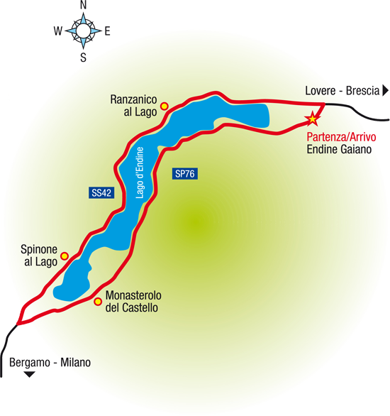 Il percorso, infatti, è stato pensato per esaltare la bellezza degli scorci lacustri e non, come il castello di Monasterolo e la graziosa Piazza nella frazione San Felice al lago, che si susseguono rapidamente, sottolineando colori, vegetazione e fauna. Lo start della corsa avviene nell’area sportiva di Endine Gaiano, centro che poggia all’estremità nord del lago, nel cuore della Valcavallina, in direzione Vallecamonica e lago d’Iseo. Qui è possibile visitare la “Valle del freddo”, dove si conserva la tipica flora di alta montagna come stelle alpine e rododendri ad un’altezza di 350 mt sul livello del mare, oltre ad un bellissimo borgo e la sua Chiesa del XXIII sec. La corsa lasciato l’abitato di Endine Gaiano, prosegue sulla SS42 verso Ranzanico, dal cui “terrazzo” è possibile godersi l’incantevole lago, circondato da splendidi paesaggi montani.