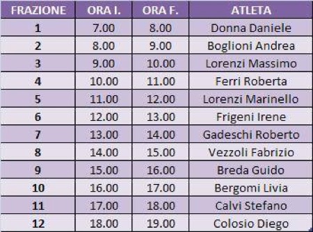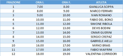 Rimandiamo al regolamento per tutti i dettagli tecnici, ci basta aggiungere che lo staffettista deve correre 1 ora di seguito, in un orario compreso tra le 7.00 del mattino (partenza) e le 19.00 (termine 12 ore).